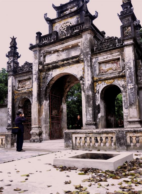 Từ ngoài vào, đầu tiên qua Tam quan là công trình kiến trúc của thời Nguyễn khá đồ sộ làm theo kiểu chồng diêm 2 tầng 8 mái đao cong. Qua Tam quan là đến một lối đi rộng được lát gạch, hai bên vườn cây quanh năm xanh tốt và sân rộng. Đi qua sân là đến khu thờ tự chính của di tích, gồm: Phương đình 2 tầng 8 mái đao cong mới được phục dựng. Tiền tế (còn được gọi là Đình Thượng) là công trình kiến trúc của hai thời Lê-Nguyễn còn bảo lưu nguyên vẹn.
